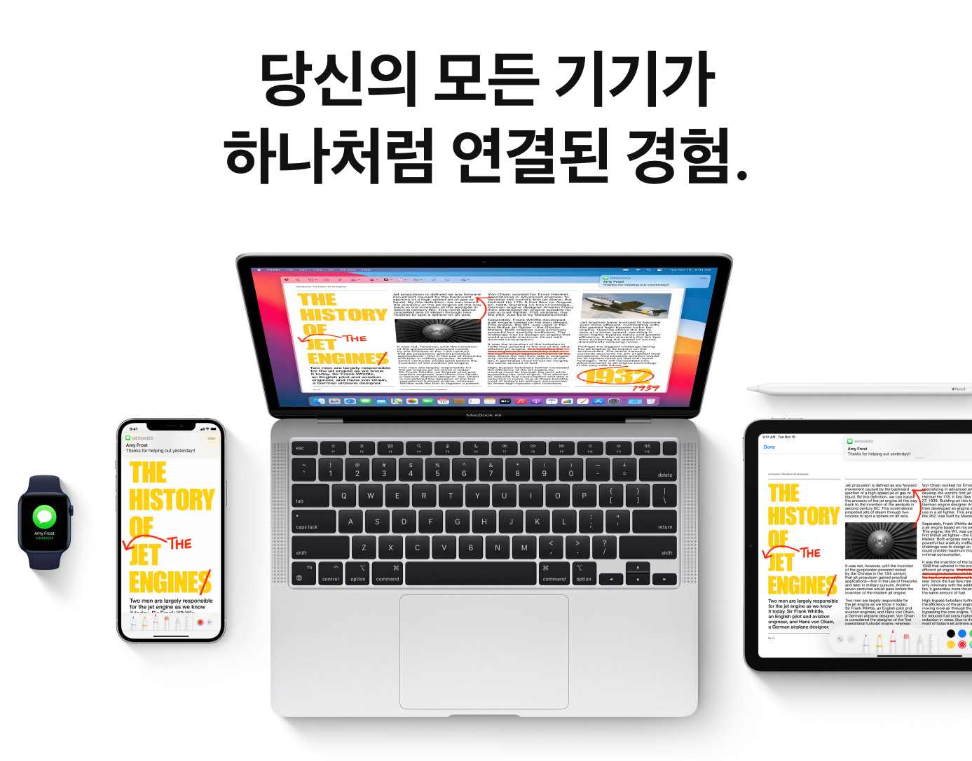 연속성 기능을 통해 전화 및 메시지를 수신할 수 있고, 핸드폰에서 쓰던 창을 컴퓨터에서 쓸 수 있으며, 간단하게 빠른 파일공유가 가능합니다.