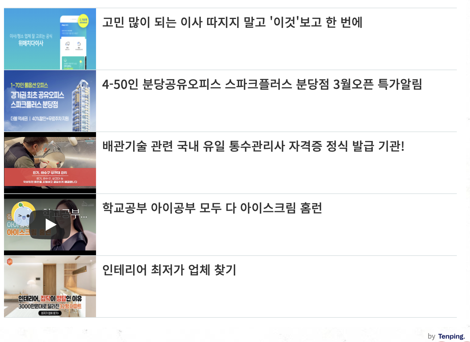 하시는 분들을 위해 텐핑 광고를 다는 방법을 소개해 드리겠습니다!
