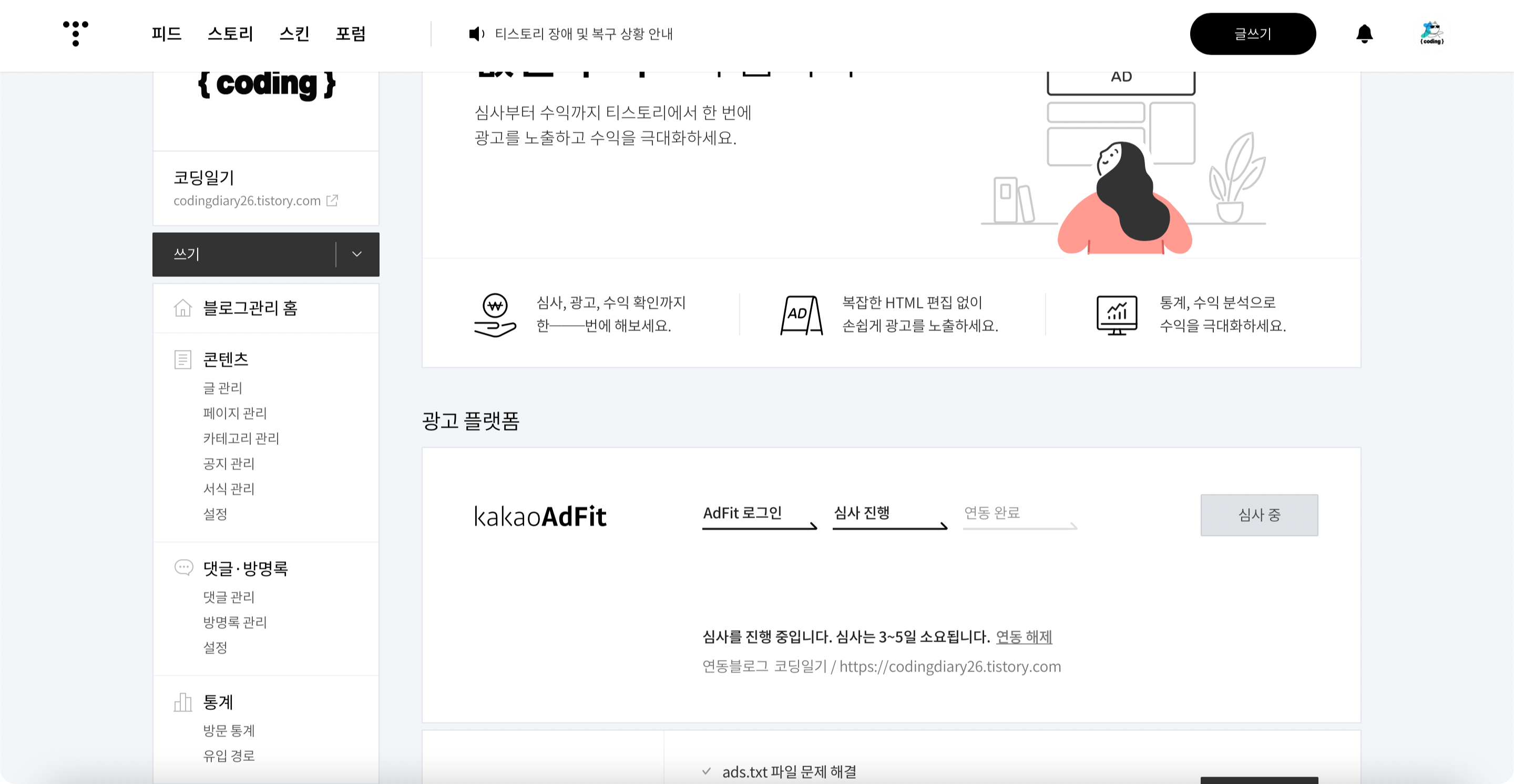 애드핏이 갑자기 등록 가능하길래 등록을 저렇게 했었거든요??